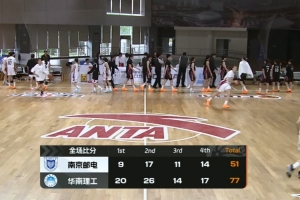 末节大比分领先之后华南理工主做防守,虽然没能像前三节那样压制对手但场面部落下风,优势一直维持在20分以上不给对手任何机会。最终,华南理工77-51大胜南京邮电大学拿下比赛。