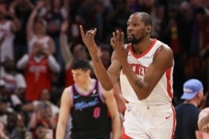 休斯敦火箭刚刚见证了历史性的一刻,凯文·杜兰特的生涯总得分超越迈克尔·乔丹,跻身NBA历史得分榜前五。杜兰特常被视为史上最佳得分手之一,在今天大胜迈阿密热火之后,他又用实打实的数据证明了这点。