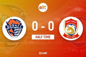 半场结束,青岛海牛0-0青岛西海岸。